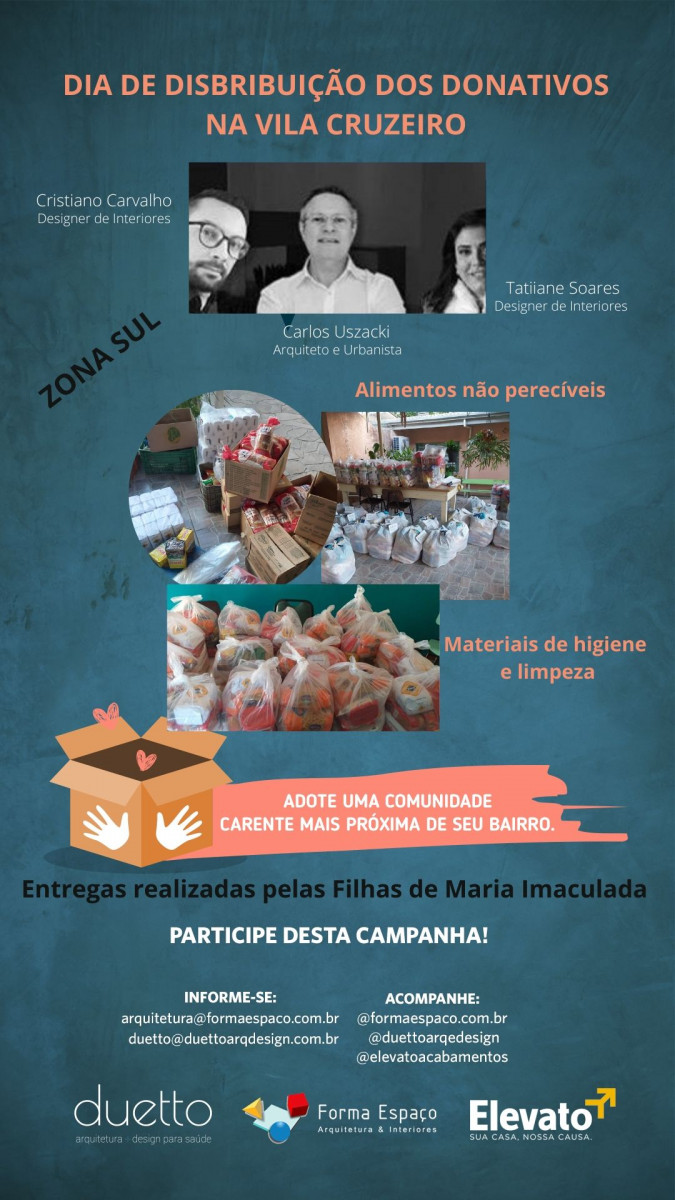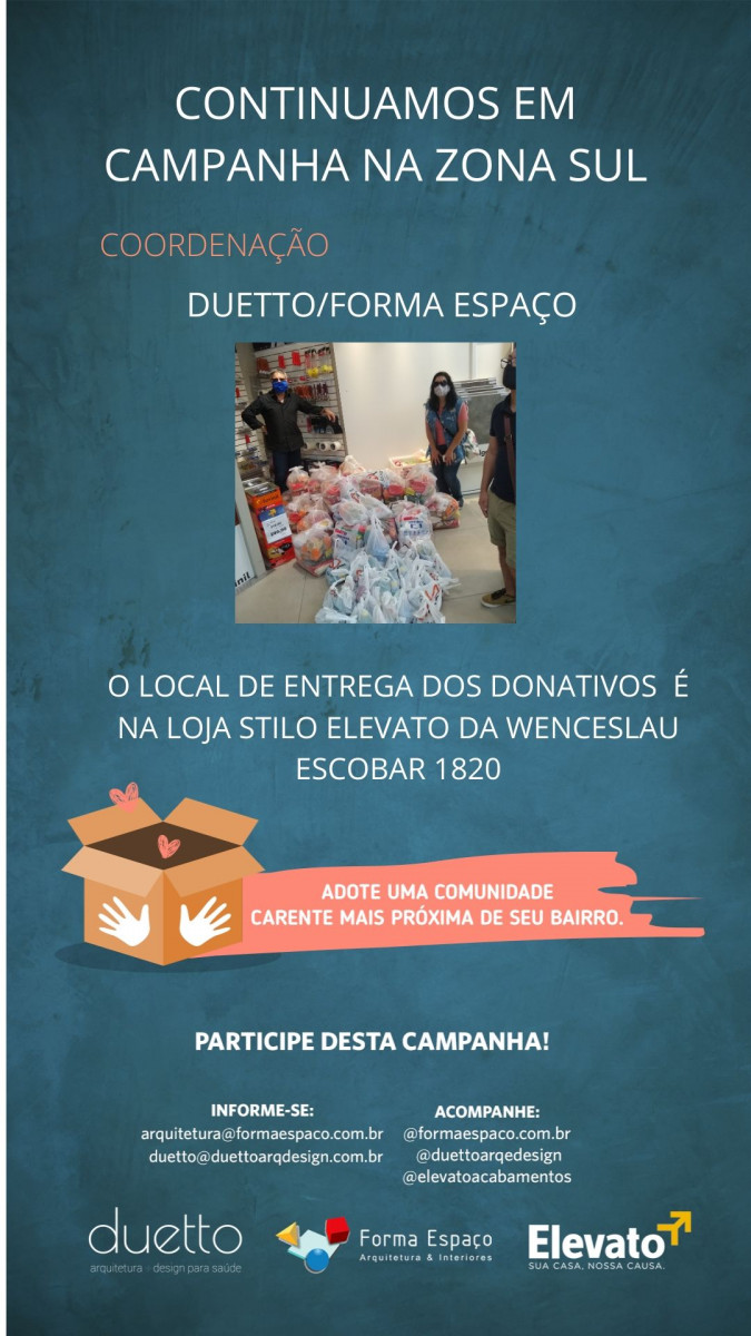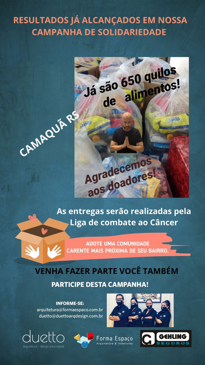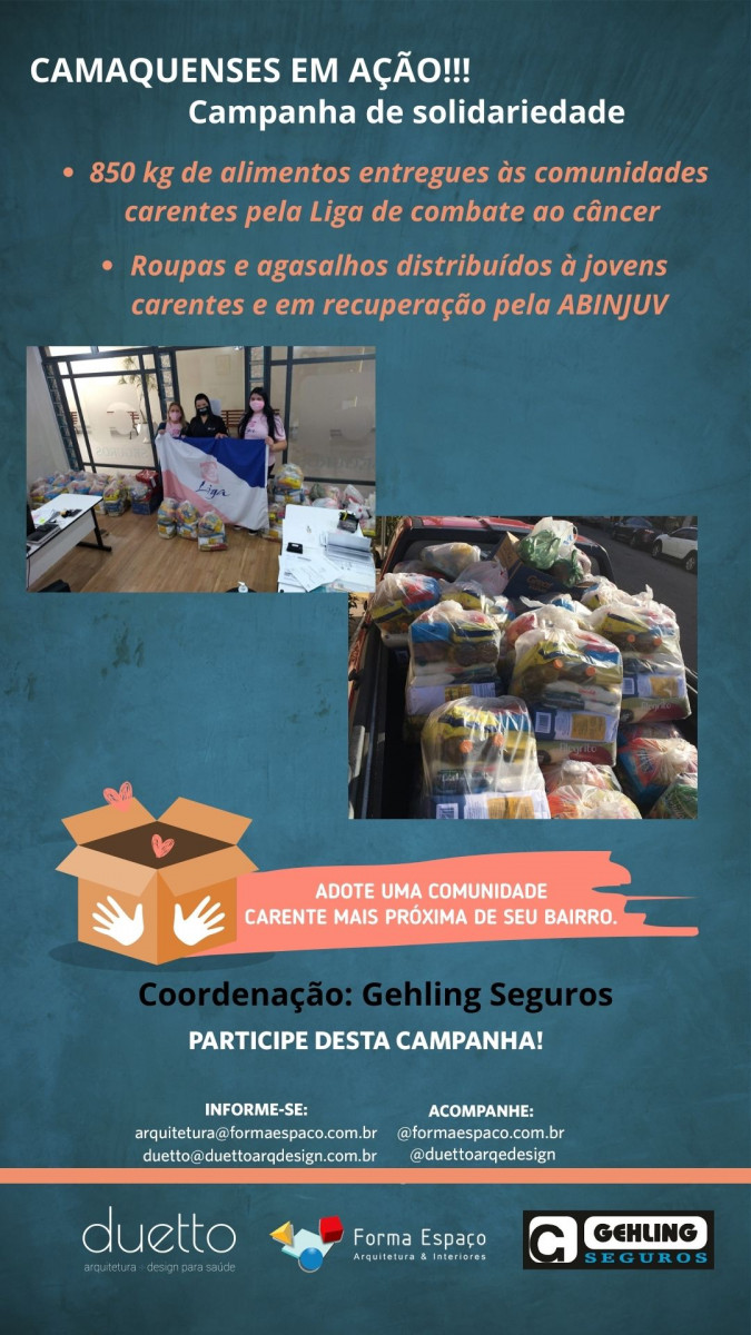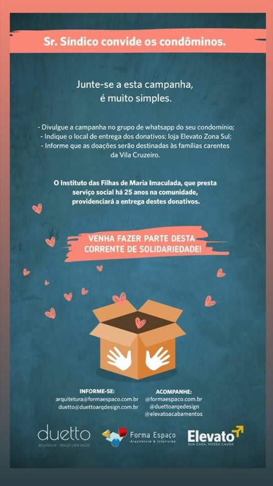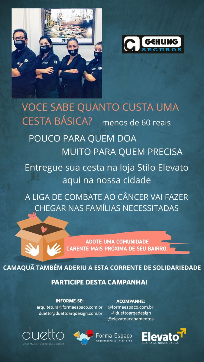 Campanha de corrente de solidariedade para angariar donativos de alimentos não perecíveis, materiais de higiene e limpeza para comunidades carentes.